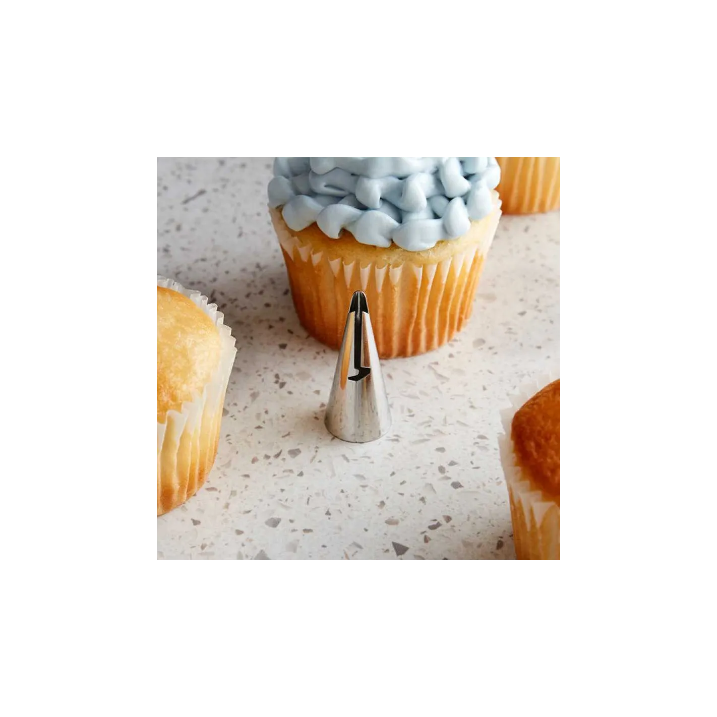 Todas tus delicias se verán profesionalmente deliciosas con este tubo de pastelería con volantes Ateco 040. Hecho de acero inoxidable duradero, este tubo es resistente a la oxidación y está diseñado para soportar el uso repetido sin deformarse. Con una punta con volantes, este tubo tiene una forma de lágrima que es perfecta para crear cintas, lazos, vieiras y otros efectos especiales.COLOR: 2DECORACION
