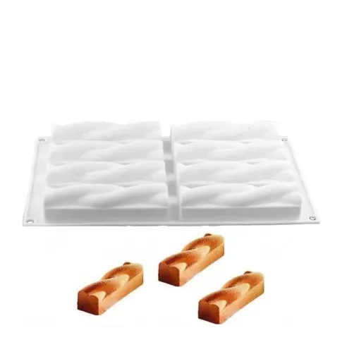 Este molde de silicón es una herramienta práctica y versátil para quienes disfrutan de hacer chocolates caseros. Su material flexible y antiadherente facilita el desmoldado y la limpieza, mientras que el diseño trenzado le da un toque especial y elegante a las barras. Ideal para quienes buscan crear chocolates con un acabado atractivo y profesional, este molde también es duradero y fácil de usar.PESO NETO: KILOS = 0.160