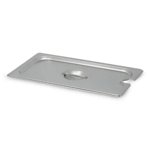 La tapa de acero inoxidable es fabricada con acero calibre 24, lo que le resistencia al uso diario, en su parte central superior se encuentra un mango para poder levantarla con facilidad su tamaño es de 1/4, cuenta con el certificado NSF