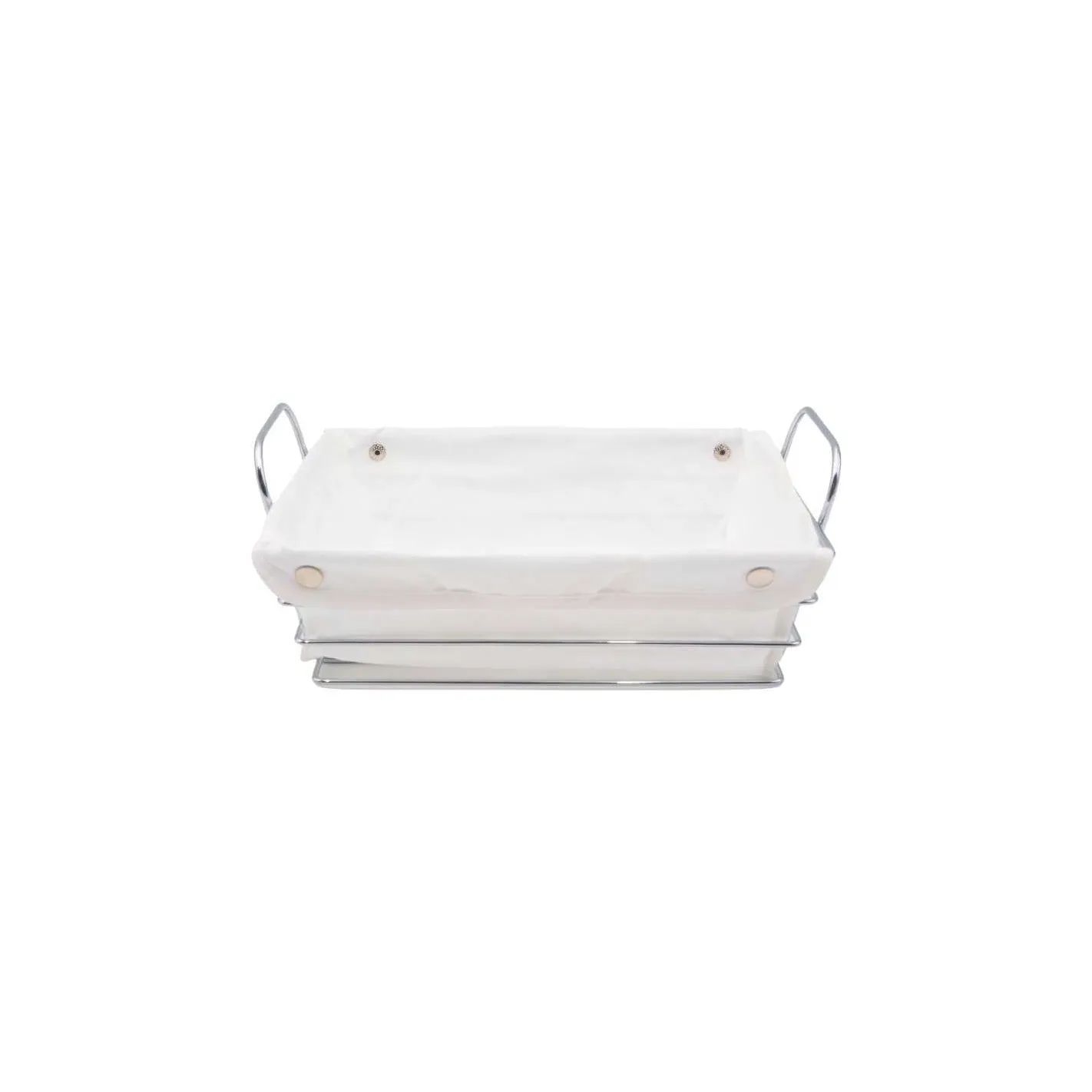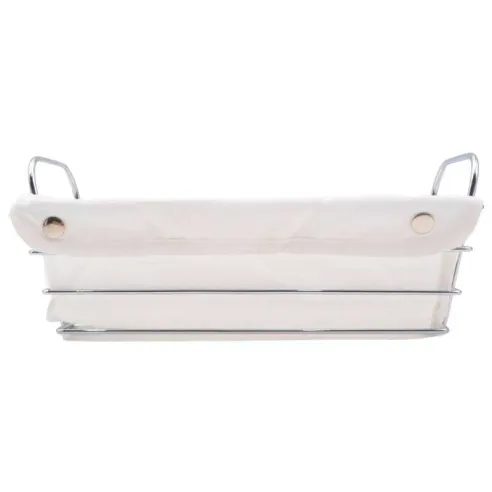 Esta moderna cesta de pan es perfecta para usar a la hora del desayuno o la merienda. Presenta tus tostadas, panecillos, cruasanes de manera atractiva en este cesto. La combinación de metal plateado con la tela da un toque muy chic a esta panadera de mesa. Al terminar de desayunar o merendar, la tela puede retirarse fácilmente de la panera para sacudir las migas.