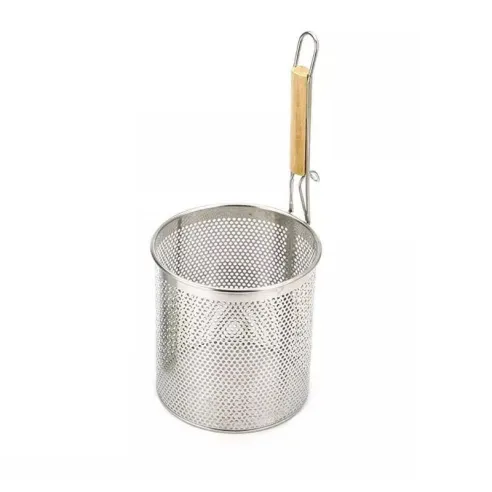 Las ollas grandes de agua hirviendo pueden ser un peligro al colar en el fregadero. En lugar de sentir que has estado levantando pesas después de cocinar, utiliza la cesta de pasta para hervir. Utilízalo como un colador de pasta en maceta, cesta de colador de fideos asiáticos, cesta de ramen, colador de fideos pho o cesta de ebullición de verduras. Se cocina 1 libra o menos de pasta (dependiendo del estilo). Colador de araña de malla no diseñado para fideos finos o delgados.