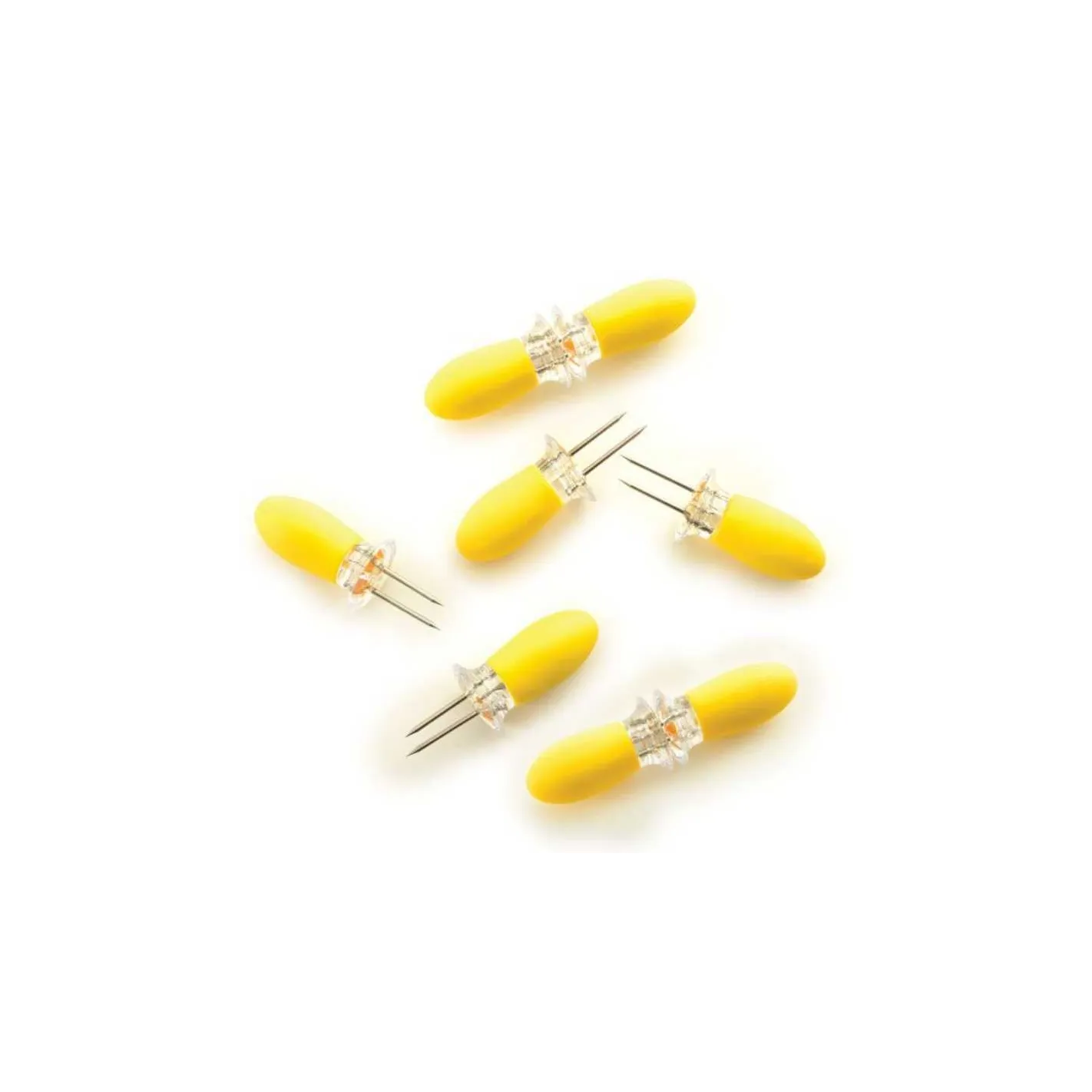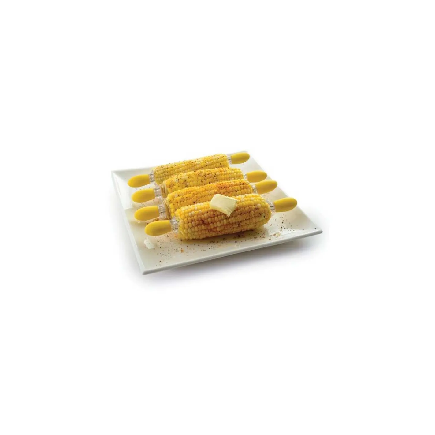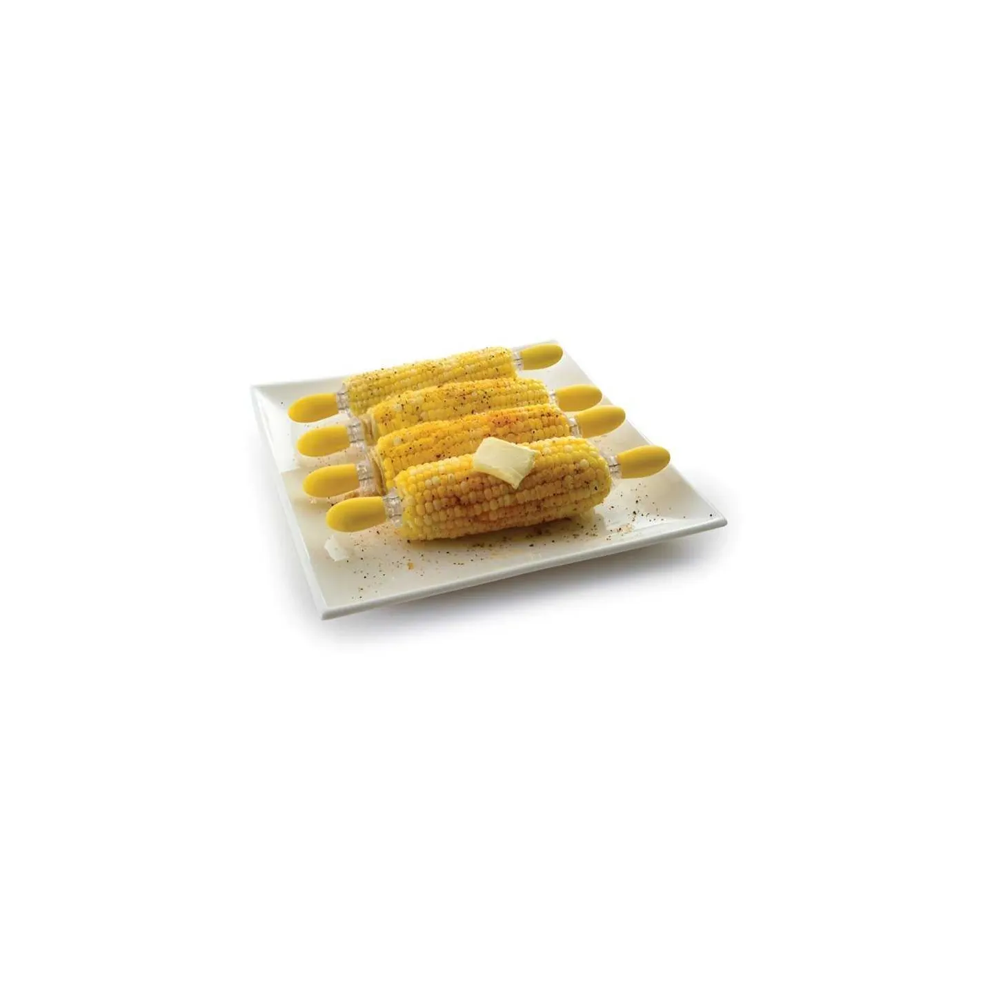 Hace que comer mazorcas de maíz sea fácil. Empuje las puntas en cada extremo de la mazorca de maíz. Come la mazorca de maíz sin quemarte los dedos y mantén la mantequilla fuera de tus manos. Perfecto para barbacoas y picnics. Púas de acero de alta resistencia para un almacenamiento seguro. Asas antideslizantes.