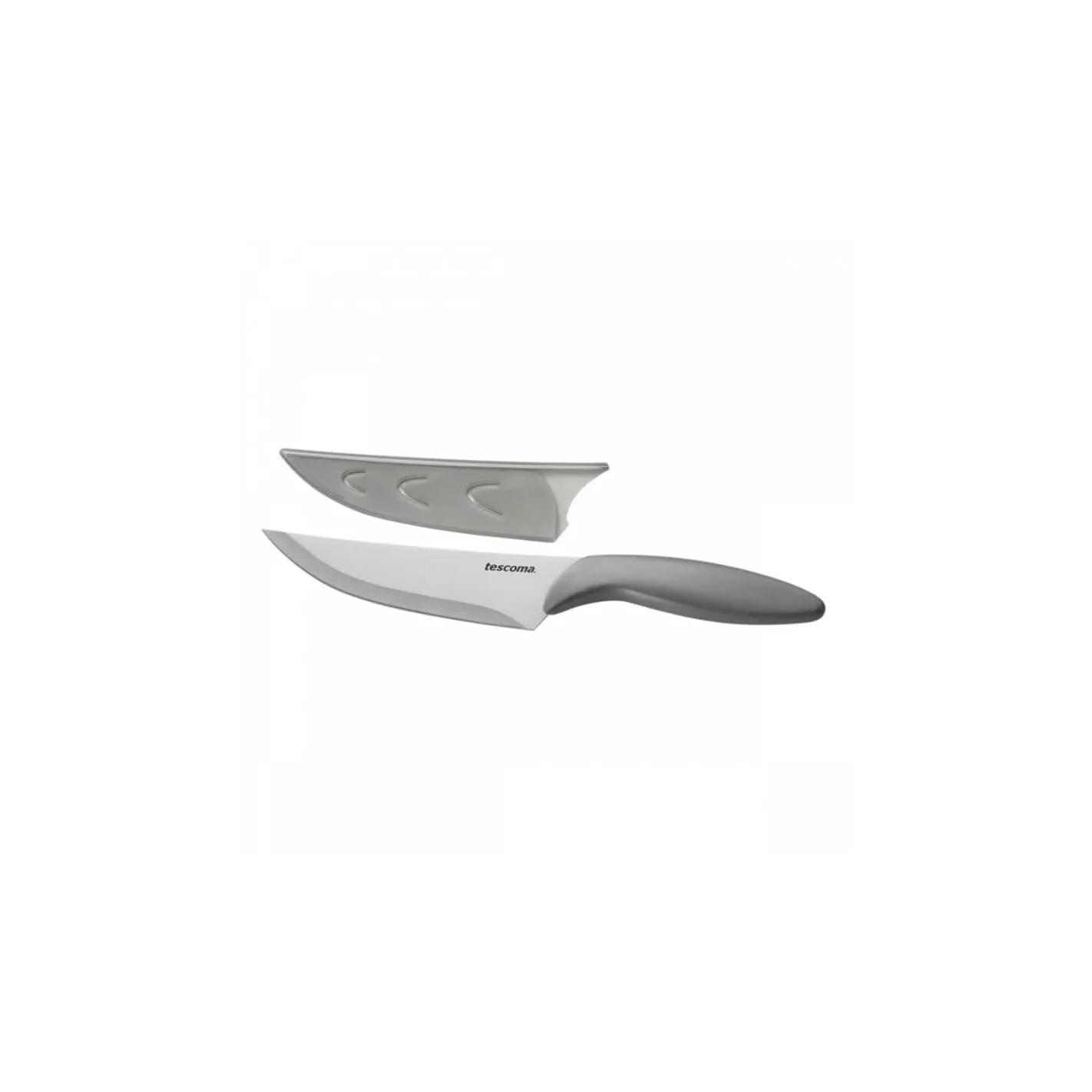 Cuchillo de cocina con hoja de acero inoxidable en funda protectora para llevar y guardar el cuchillo de forma segura. Fabricado en acero inoxidable de alta calidad, mango y funda de plástico resistente. Aptas para el lavavajillas.MATERIAL: ACERO INOXIDABLE