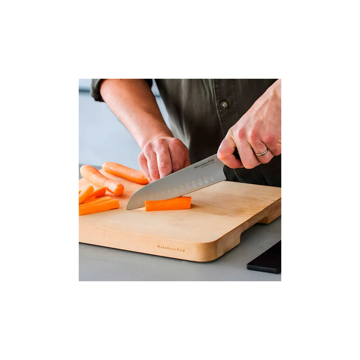 Es un accesorio indispensable para la preparación de comidas diarias. Las estrías de la hoja están especialmente diseñadas para evitar que los alimentos se peguen mientras cortas, lo que lo hace ideal para picar y cortar verduras en cubitos. Este cuchillo forjado está elaborado por expertos con acero japonés semipulido con alto contenido de carbono, endurecido y templado para proporcionar un filo duradero para un corte profesional y de calidad en todo momento.
