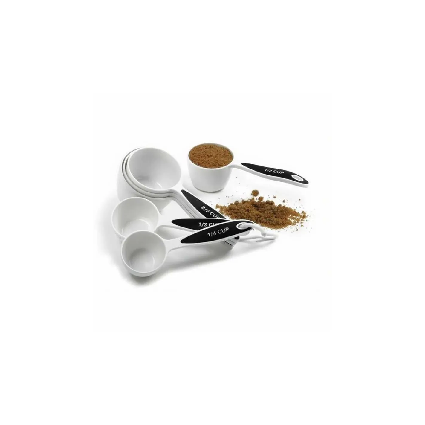 Duraderos y fáciles de usar, estos vasos son ideales para medir con precisión los ingredientes secos, pero también son adecuados para líquidos. Las tazas incluyen una base estable para evitar derrames. Hechas de plástico duradero, estas tazas son fáciles de limpiar y cuentan con asas suaves, cómodas y de santopreno para un agarre fuerte y fácil. Funciona para uso con la mano derecha o izquierda. Incluye seis tazas, que miden 1/4, 1/3, 1/2, 2/3, 3/4 y 1 taza.