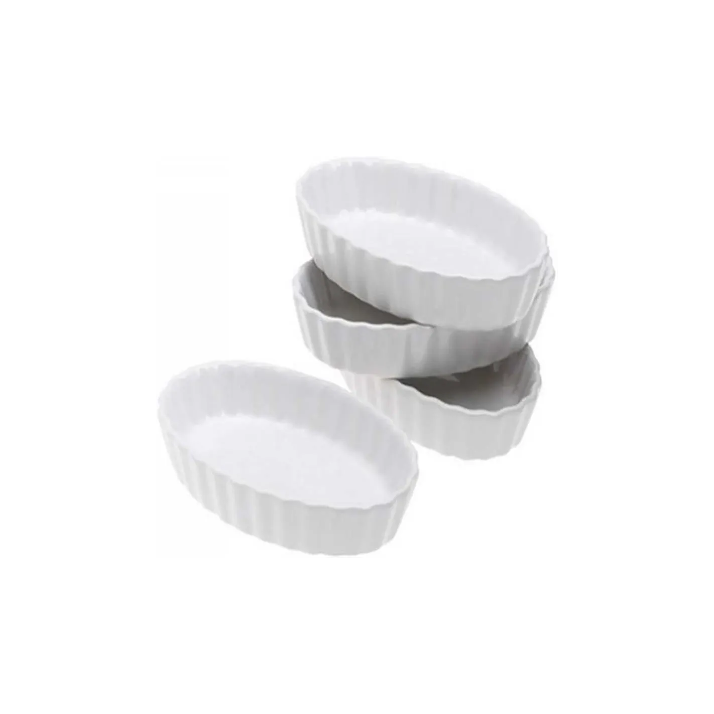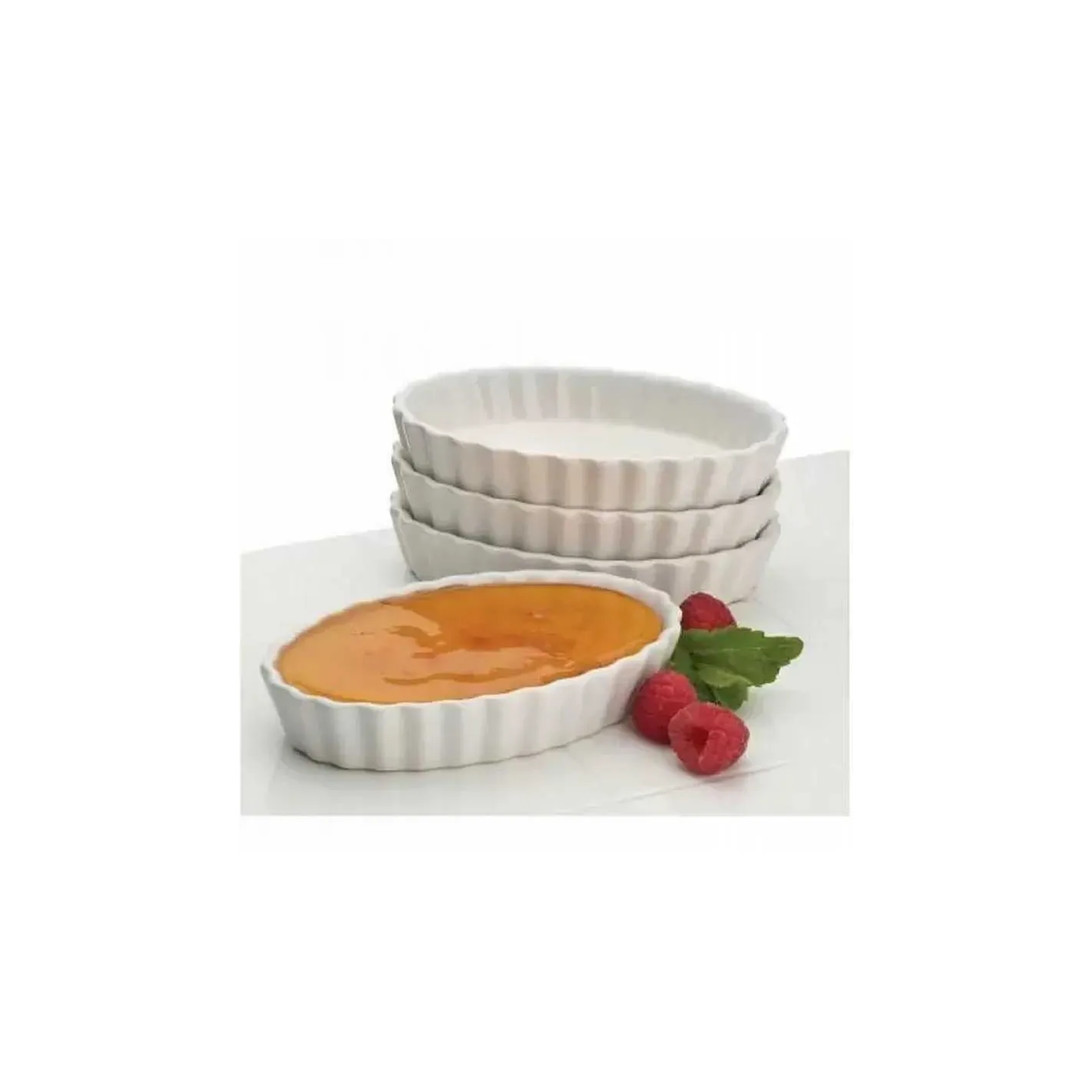 El ramekin tiene una forma ovalada para postres más exquisitos y cuenta con una capacidad de 4 onzas en cada uno de los aposentos. Todo un set para poder degustar hasta un maximo de 4 personas.