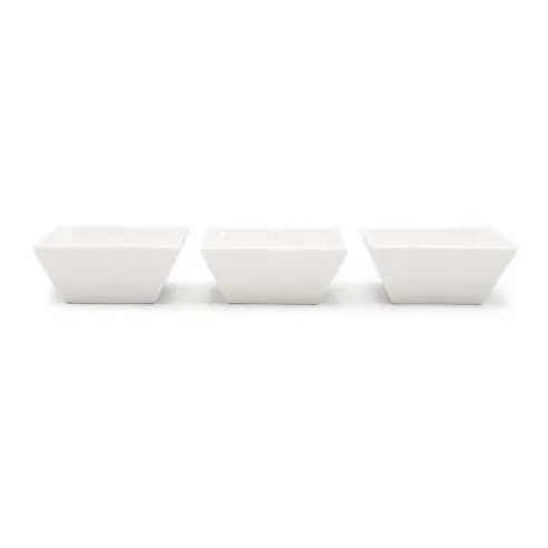 Set de 3 Unidades de pequeños recipientes diseñados específicamente para servir salsas, dips, aderezos y otros condimentos. Estos bowls, hechos de cerámica de alta calidad, son ideales para presentar acompañamientos de manera elegante y organizada en la mesa.USO: POSTRE