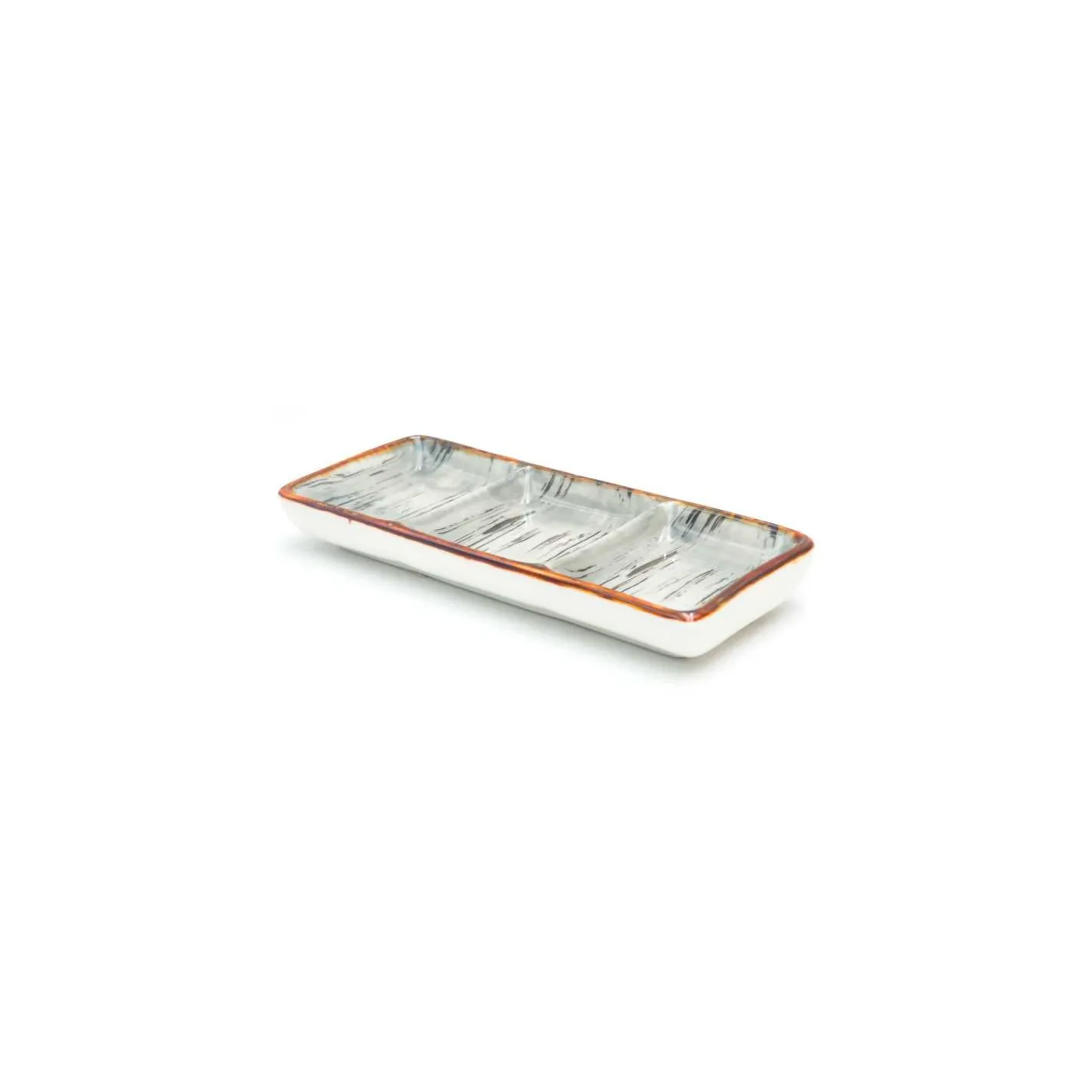 Plato Triple de Ceramica de 15 x 6 Centimetros de Color Blanco TIPS QJC-023
