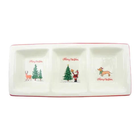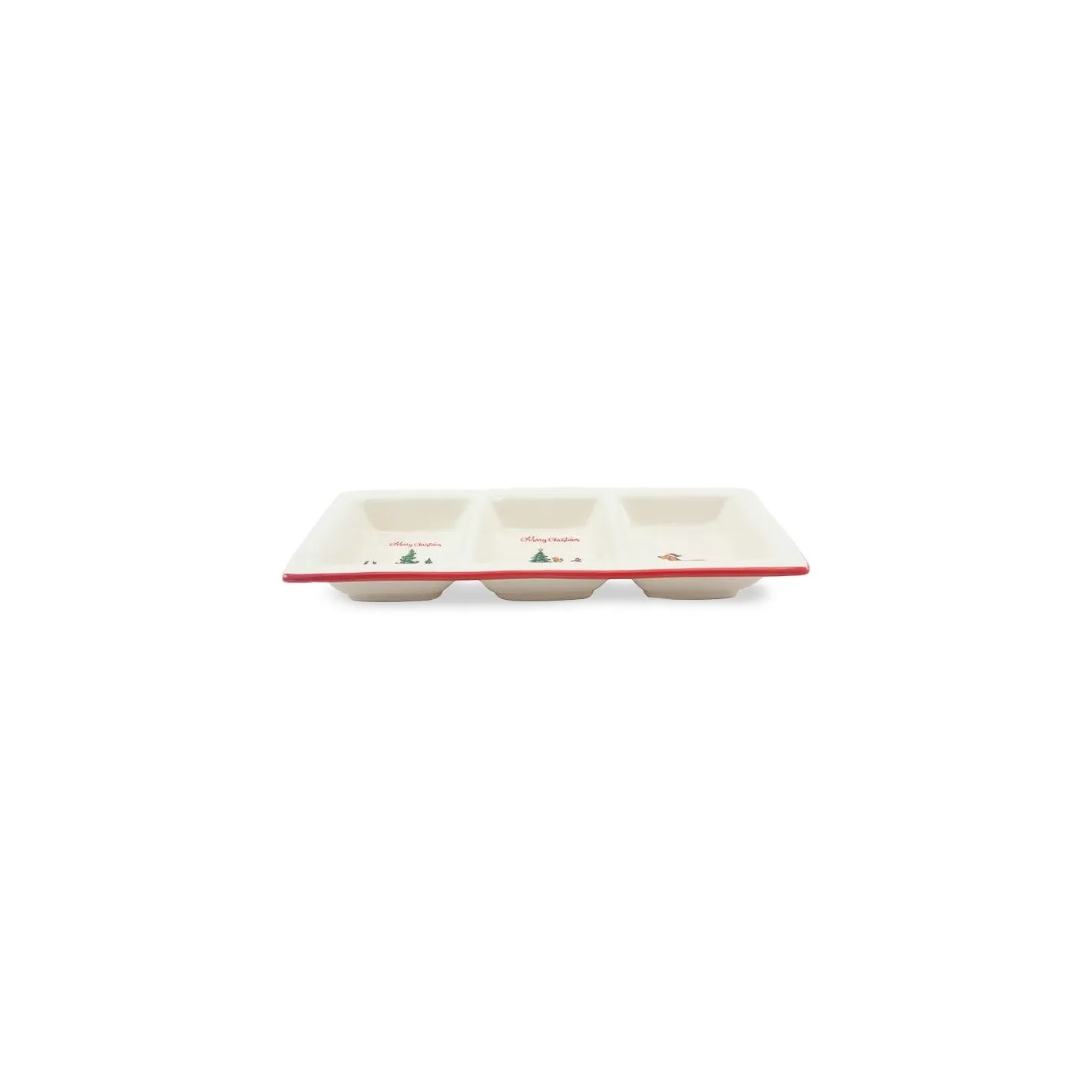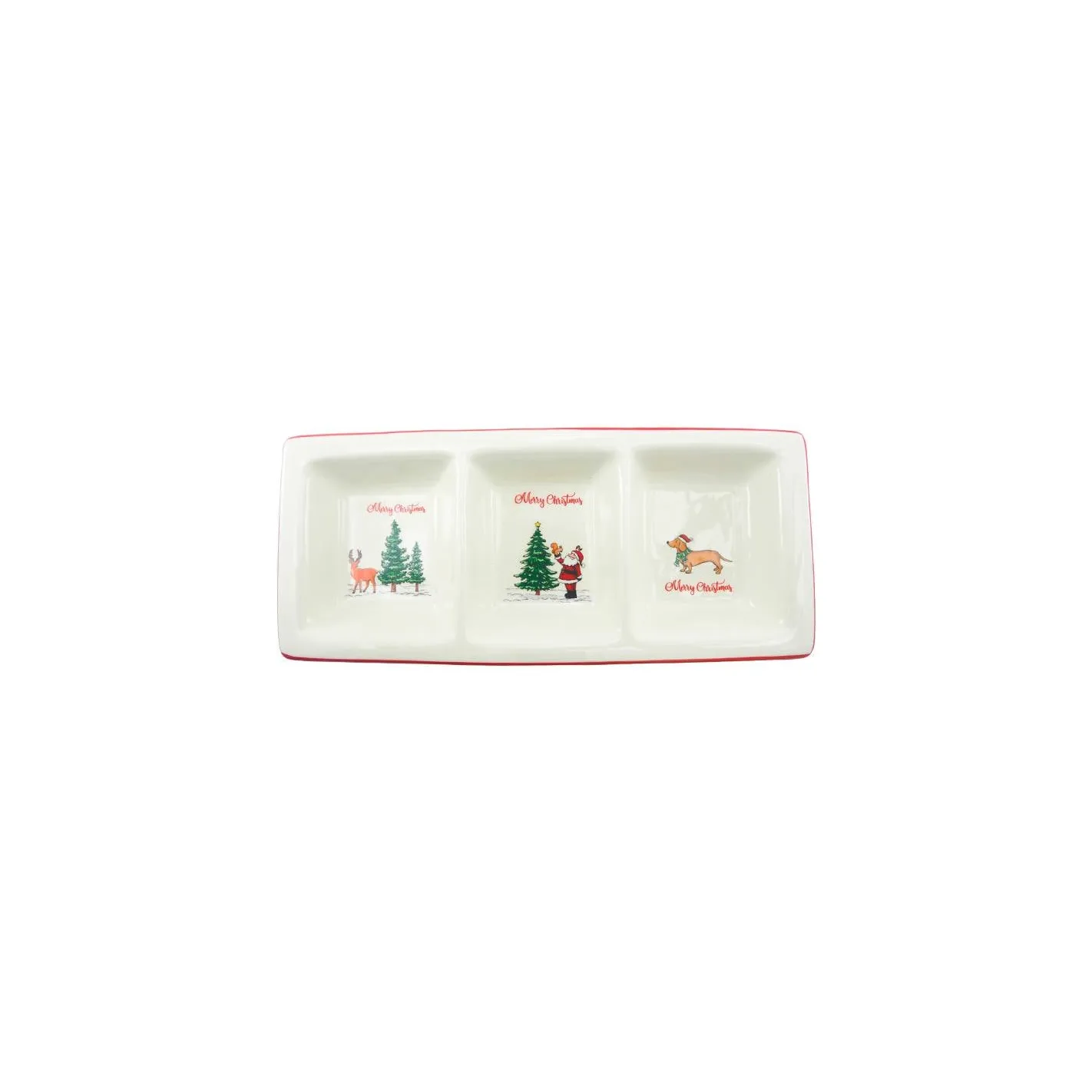 Plato Triple Navideno Rectangular de Ceramica 32 x 14 Centimetros TIPS 24B12-07