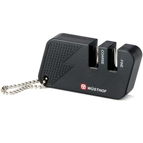 Elija entre dos niveles de afilado para su comodida. El nivel grueso se recomienda para cuando el cuchillo está completamente romo. El nivel fino se recomienda tanto para afilar fino como para reafilar regular. Las láminas de cerámica muelen la hoja y el cuchillo recupera su nitidez original. Recomendado para su area de cocina.