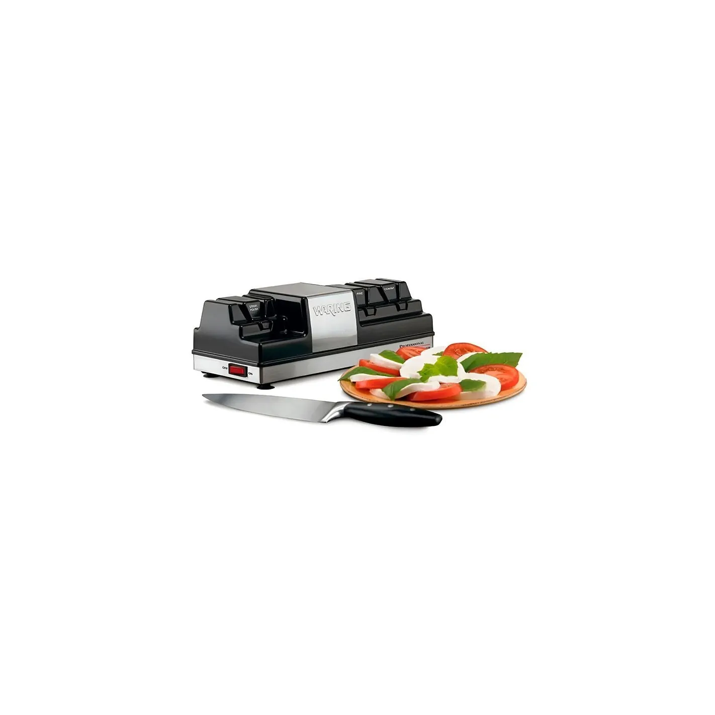 Mantenga sus cuchillos de cocina correctamente con el afilador de cuchillos de tres estaciones. Esta unidad compacta se muele en ángulos óptimos recomendados por los fabricantes de cuchillas, lo que da como resultado las cuchillas más afiladas posibles. También puede pulir sus cuchillas y eliminar eficazmente las rebabas más rápido con la rueda de pelado de dirección inversa. Un cajón magnetizado debajo de la muela captura virutas de metal y facilita la limpieza.