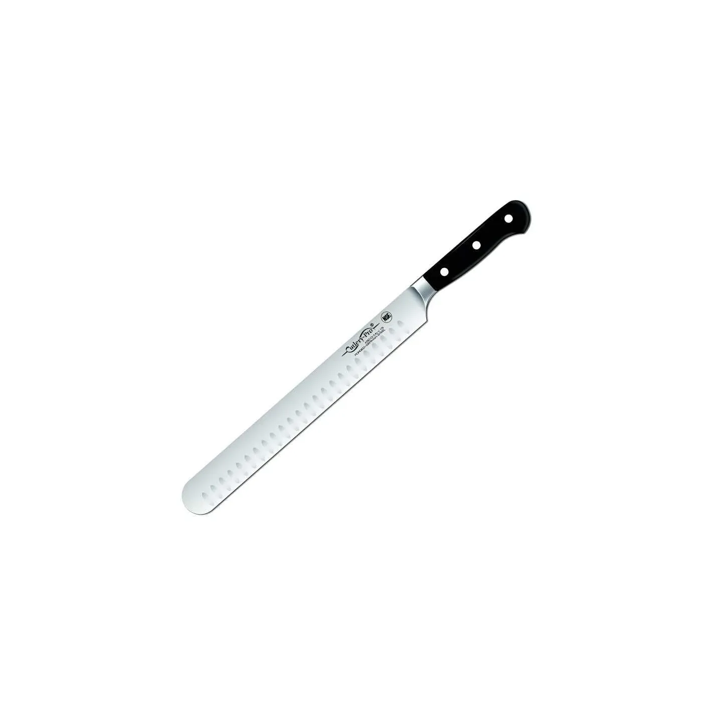 La cuchilla rebanadora se utiliza para cortes pesados y por lo tanto es perfecta para cortar grandes porciones de carnes como el pavo o el jamón.